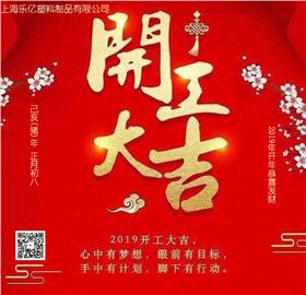 2019年2月12日 星期二 正月初八上海樂億塑料制品有限公司正式開工。生意興隆,財源滾滾,紅紅火火,開工大吉。
